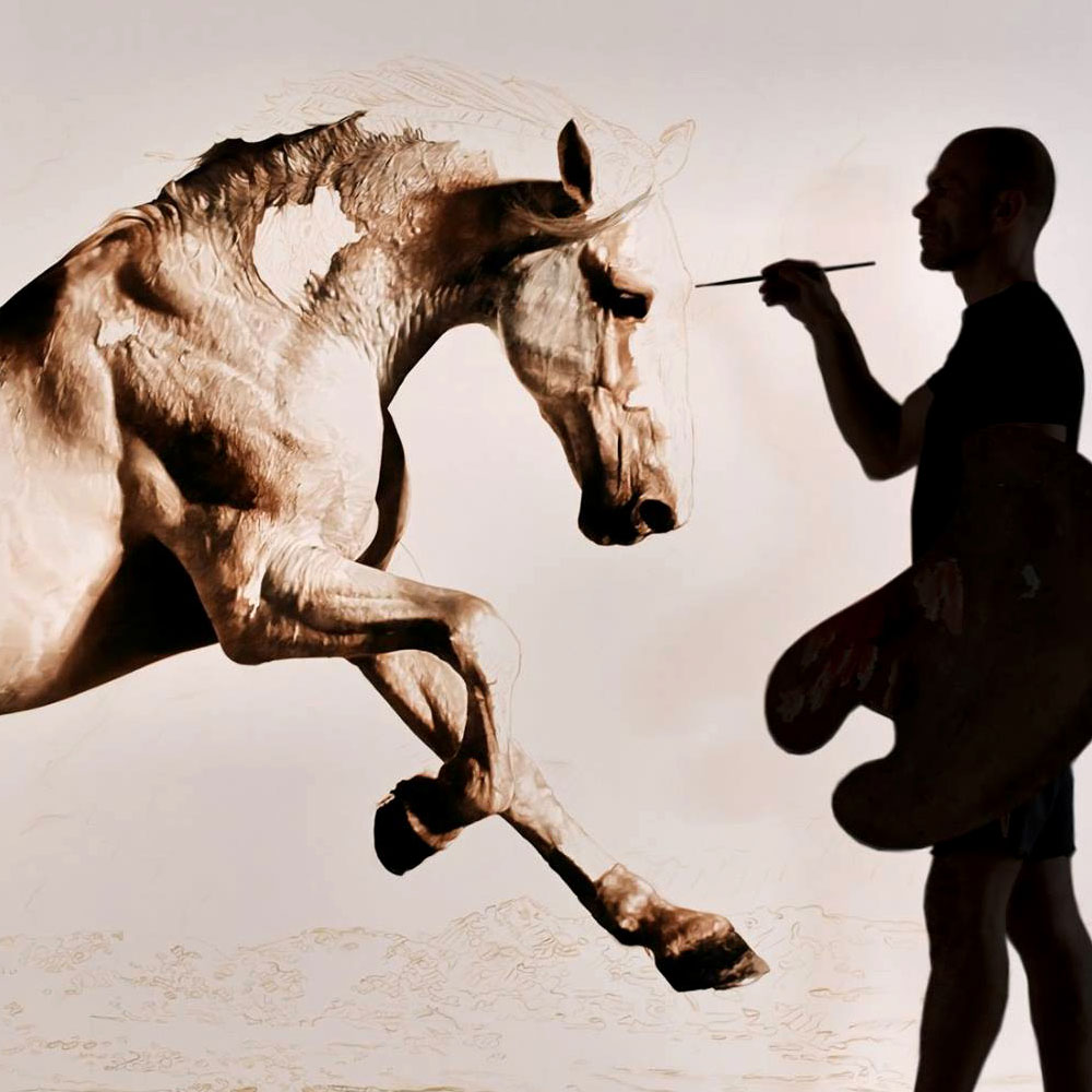techniques de maîtrise, ses peintures contemporaines, réalisées en taille réelle, ont un fort