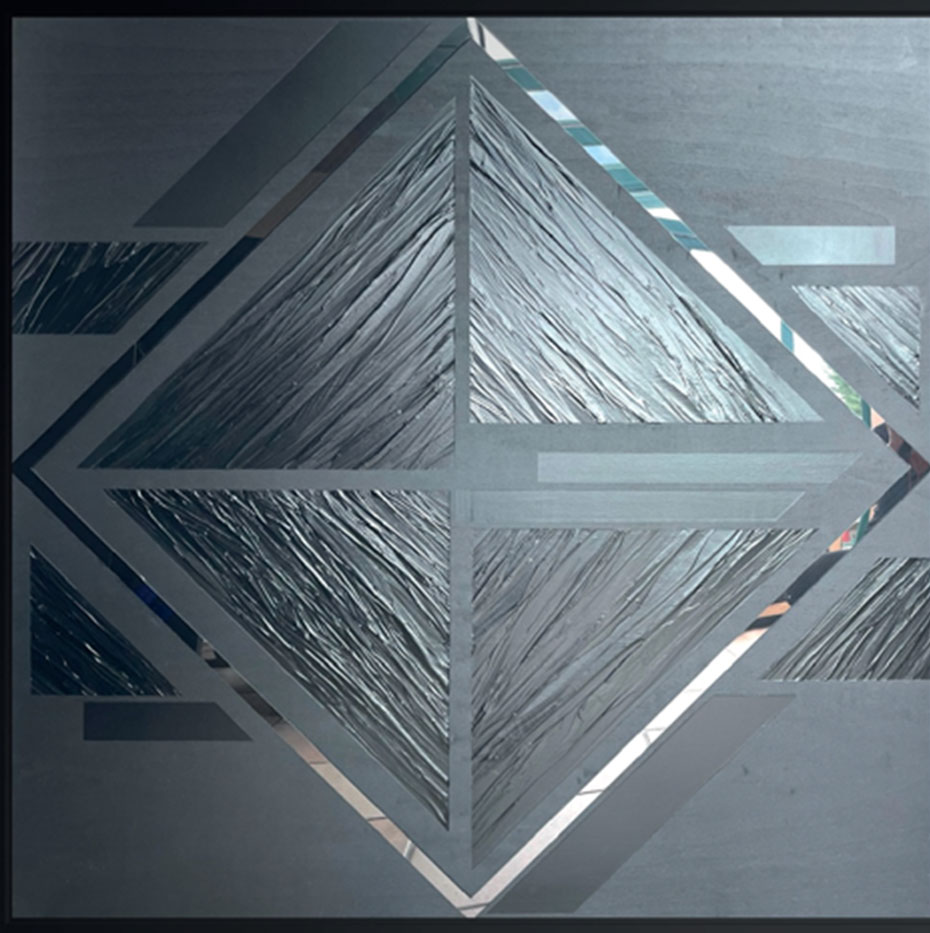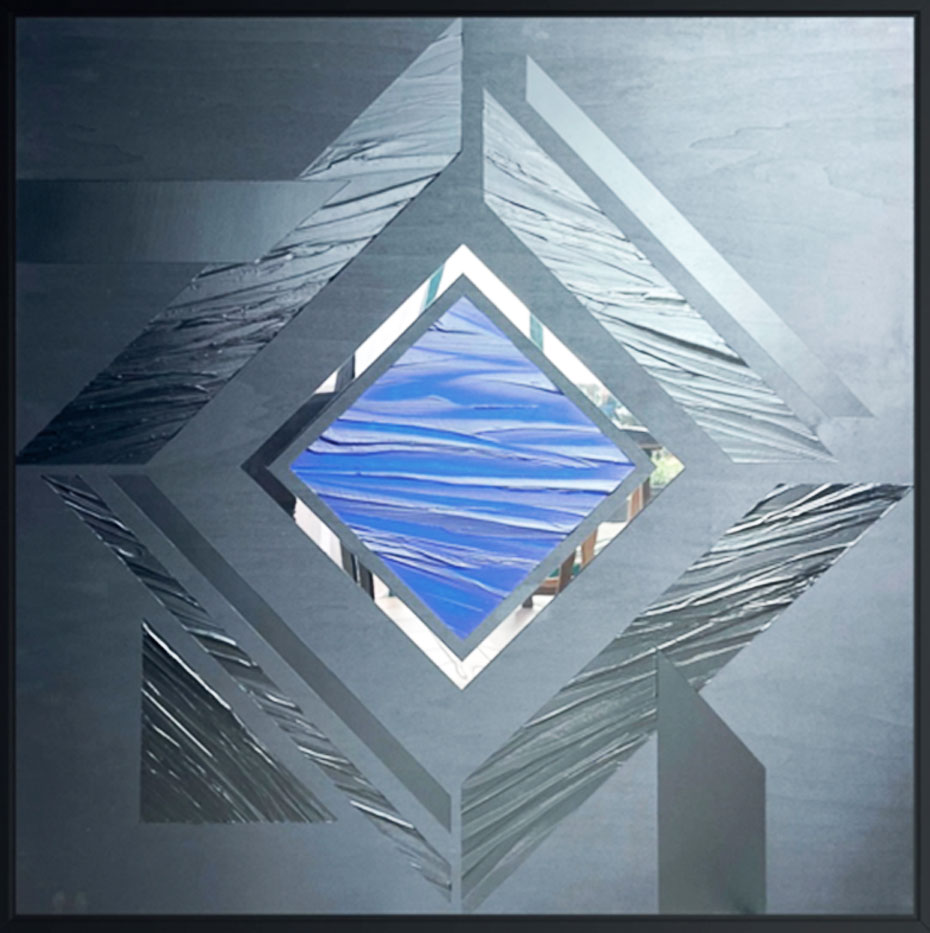 Technique : Acrylique, minéraux, inox miroir sur peuplier